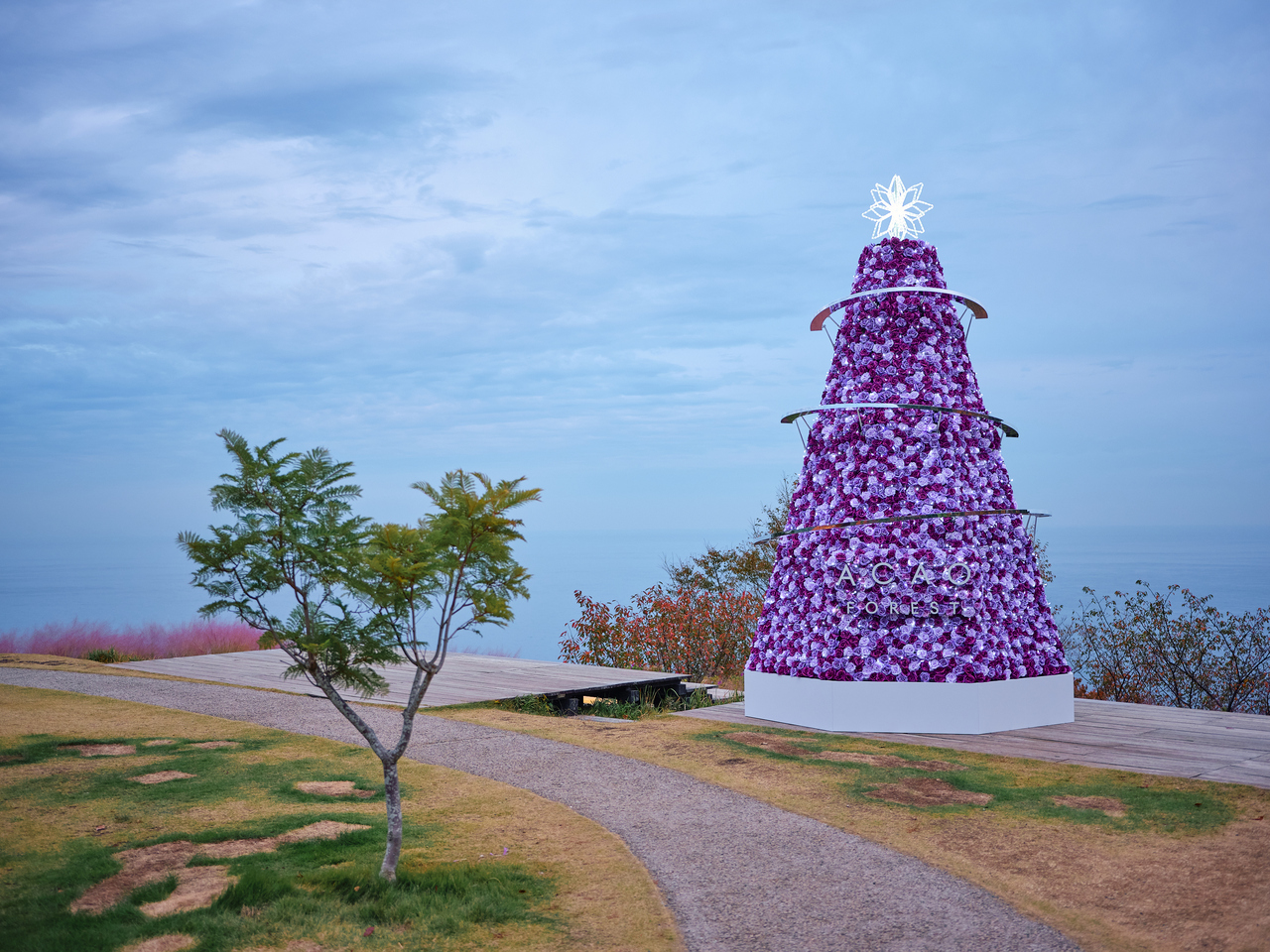 今年のテーマカラーは「パープル × ホワイト」。相模灘を一望できる園内屈指の絶景スポット「オーシャンデッキ」には、高さ約4メートルのパープルカラーのクリスマスツリーが登場します。夜にはブルーの光をまとい、隣接する COEDA HOUSE とともに幻想的で静かな冬の景色を創り出します。特別なシーンが撮影できる期間として、ロケーション撮影にも最適です。