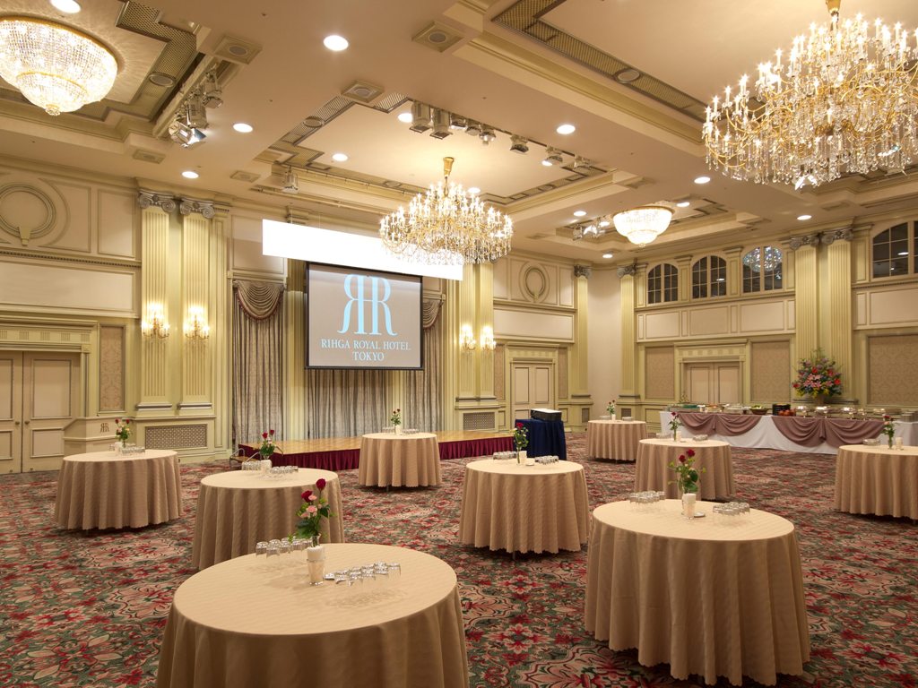 ロケでもお求めの多い、リーガロイヤルホテル東京のメインバンケット「ロイヤルホール」。