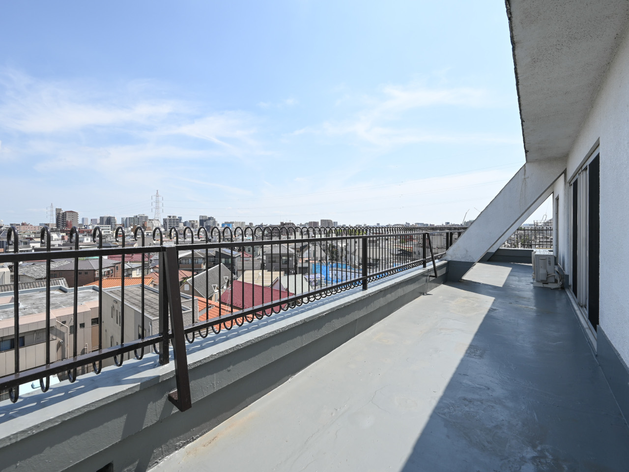 屋上で川の向こうのスカイツリーを見ながらたそがれるシーンの撮影にぴったり。