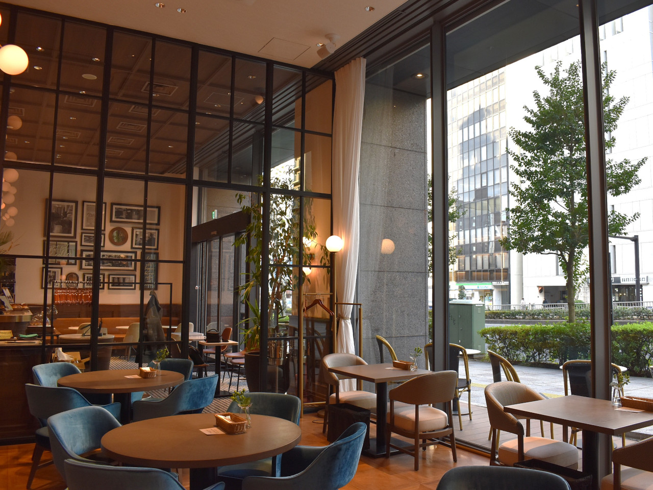 上質なシャンデリアとインディゴブルーチェアなどが印象的で、海外の雰囲気を思わせる内装。