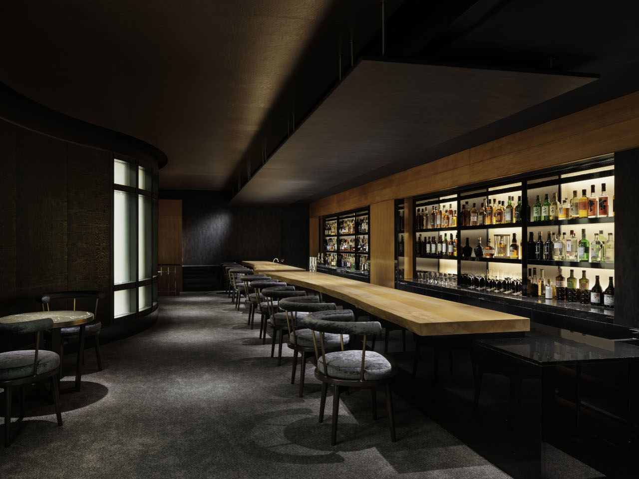 地下で外光が入らない100坪超えのバーラウンジ