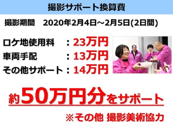 ロケ地使用料・車両手配・その他を合わせると、費用にして約50万円だとか!