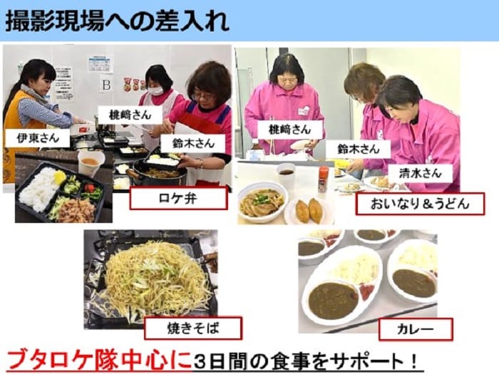 ブタロケ隊中心とした食事の差し入れをはじめ、